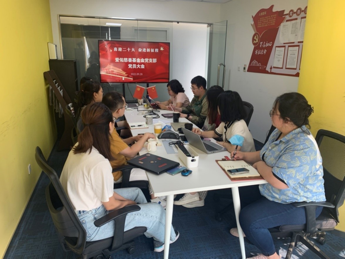 在民政部部管社会组织综合党委的热情指导和亲切关怀下,爱佑慈善基金会党支部于2016年3月16日获准成立,现有正式党员10名。爱佑慈善基金会党支部按照党中央和民政部党组的部署要求,全面深入学习宣传贯彻党的精神,完善党支部组织建制。不断引导全体党员和基金会干部深刻理解习近平新时代中国特色社会主义思想体系,加强党员干部理论学习,立足岗位,践行“不忘初心,牢记使命”主题教育活动。以党建为引领,促进机构项目工作的开展,推动基金会各项工作在党关于新时代慈善事业的要求下科学发展。