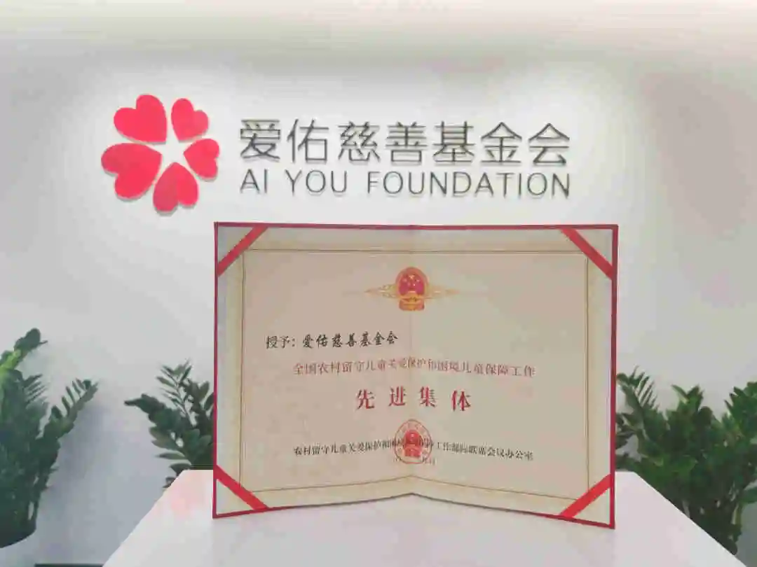 2021年9月,爱佑慈善基金会由民政部、中央政法委等26个部门和单位组成的农村留守儿童关爱保护和困境儿童保障工作部际联席会议办公室授予“全国农村留守儿童关爱保护和困境儿童保障工作先进集体”的荣誉称号,以表彰爱佑慈善基金会近年来在儿童福利领域做出的努力和贡献。
